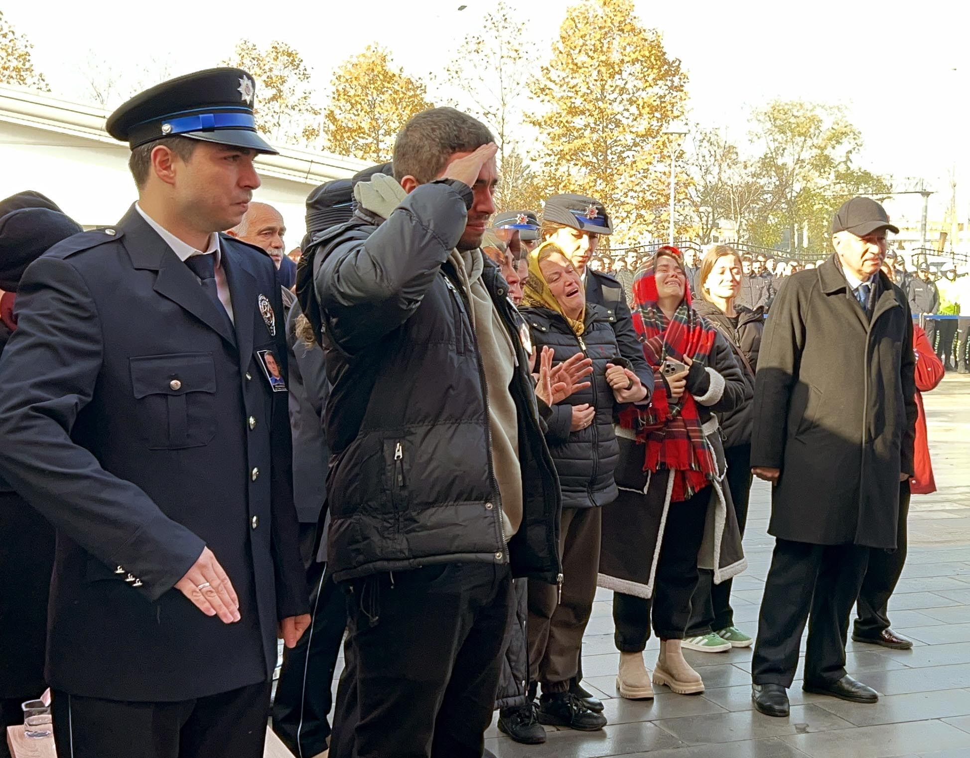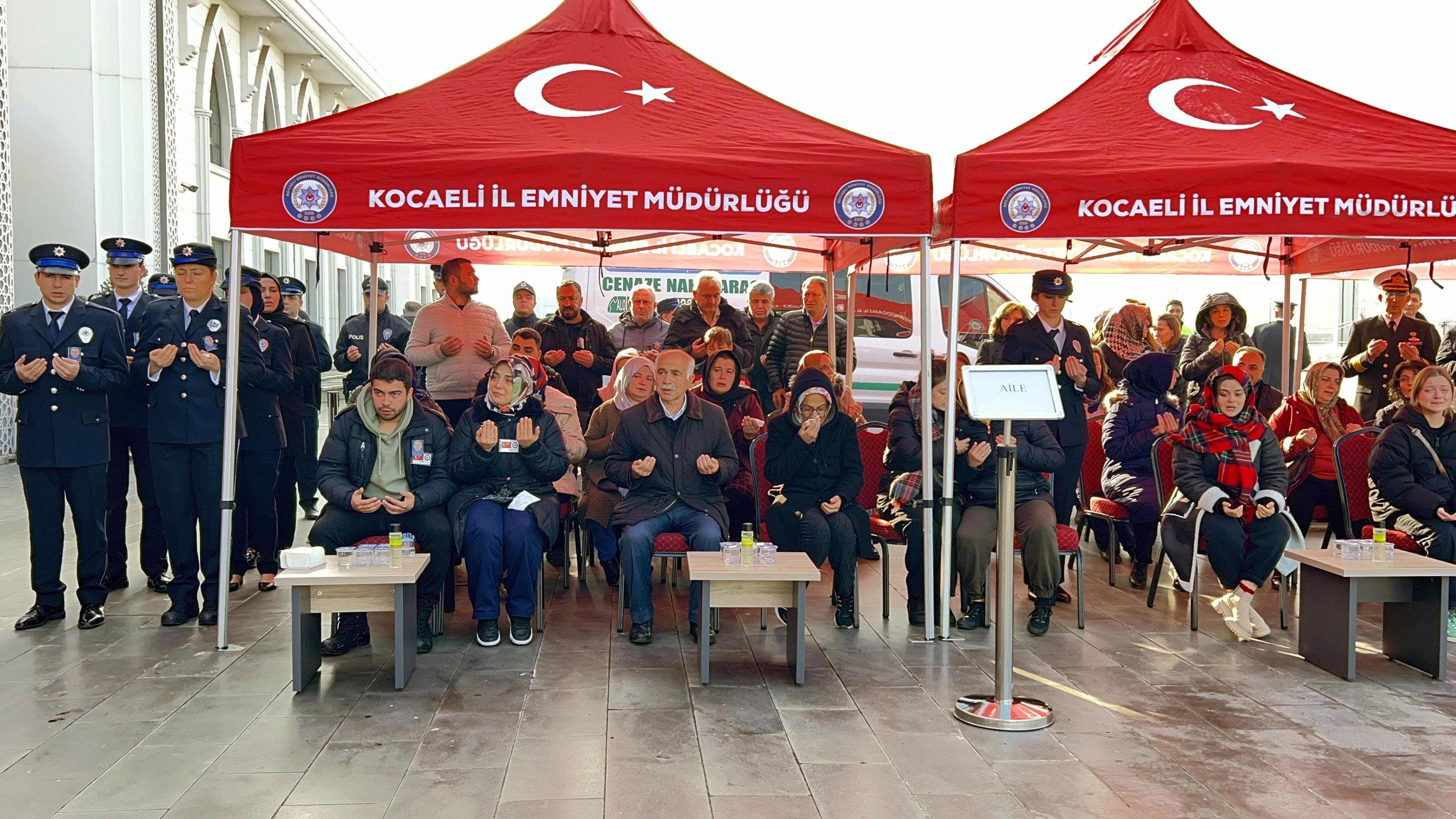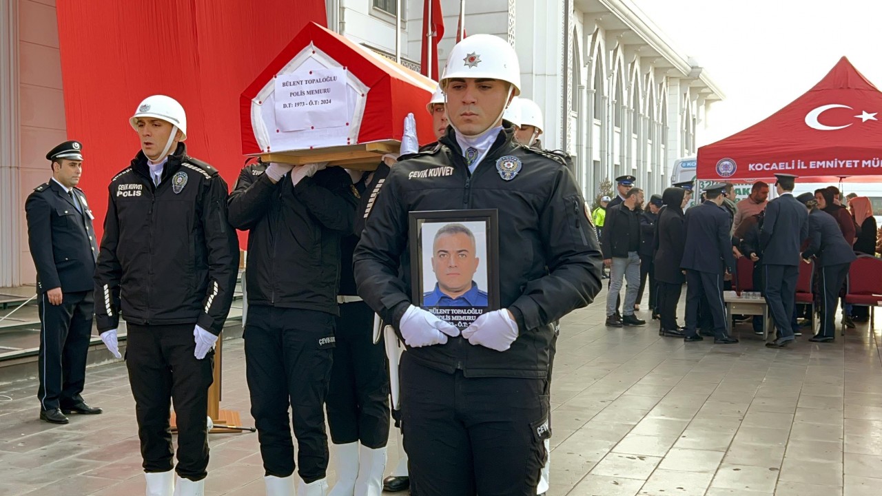 Kocaeli'nde, kalp yetmezliği nedeniyle hayatını kaybeden polis memuru Bülent Topaloğlu (51) için tören düzenlendi. Törende, oğlu Berker Topaloğlu babasını son yolculuğuna 'selam’ verip uğurladı.