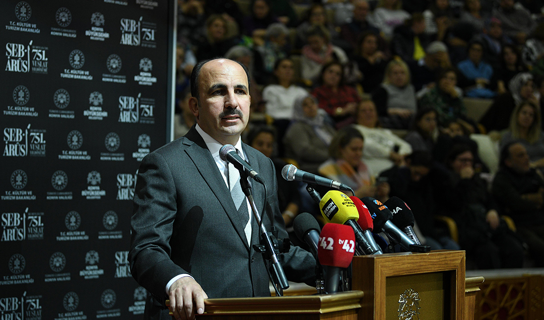 “Konya’mız her yıl olduğu gibi bu yıl da güzel bir organizasyonla Şeb-i Arus etkinliklerini hayata geçiriyor. Bu kapsamda 10 gün boyunca gece gündüz devam edecek etkinliklerle Mevlana’nın ‘muhabbetle acılar bal olur, dertler şifa bulur’ sözlerinde olduğu gibi gönüller arasında sınırları aşan köprüler kurulacak. Bizler Mevlana’nın felsefesini gelecek nesillere aktarırken kültür mirasımızı korumayla yetinmeyip aynı zamanda yaşatmak durumundayız. Çünkü o mirasta ümit var, o mirasta insanlığın muhtaç olduğu esenlik var. Şebiarus vesilesiyle Allah’a birbirimize ve bütün mevcudata duyduğumuz sevgiyi tazelememizi diliyorum.”