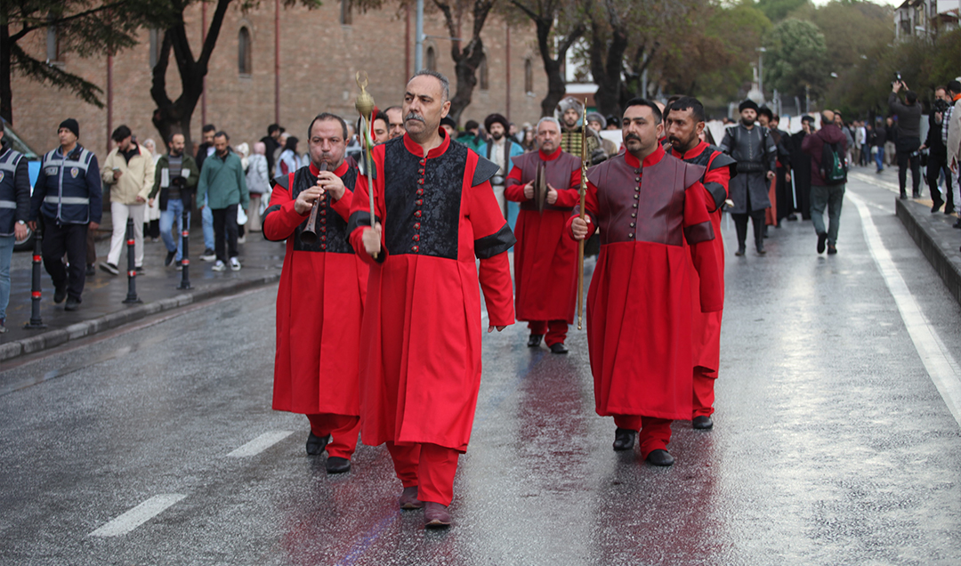Temsili karşılama oyununda Hazreti Mevlana ve ailesinin Konya'ya gelişleri ve Sultan Alaaddin Keykubat tarafından karşılanışı izleyenlerin beğenisini topladı.