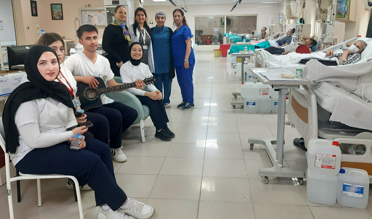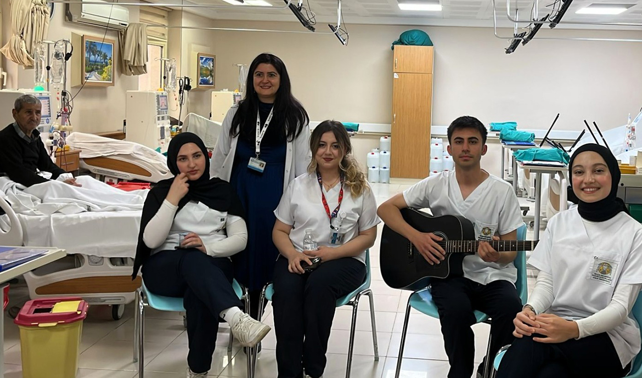 Selçuk Üniversitesi Akşehir Kadir Yallagöz Sağlık Yüksekokulu Hemşirelik Bölümü öğrencileri, Akşehir Devlet Hastanesi’nde hemodiyaliz tedavisi gören hastalara müzik dinletisi sundu.