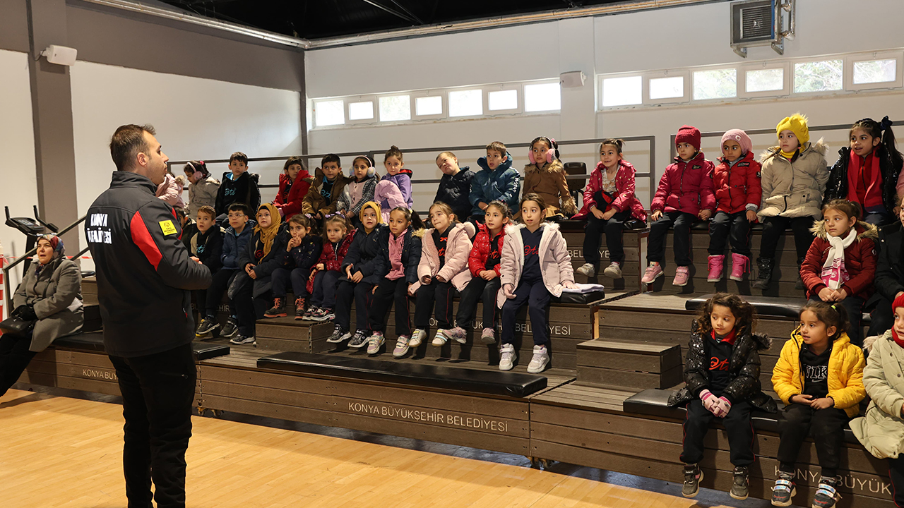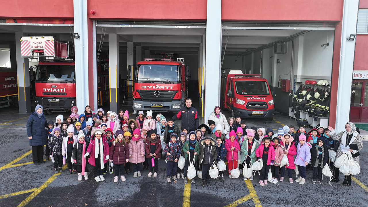 Konya Büyükşehir Belediyesi ve İl Millî Eğitim Müdürlüğü iş birliğiyle hayata geçirilen “Kahraman Çocuklar İtfaiyecilerle Öğreniyor” projesi kapsamında Selçuklu, Karatay ve Meram’daki tüm ilkokulların 1. sınıf öğrencilerine Büyükşehir İtfaiye Eğitim Merkezi’nde temel yangın güvenliği konusunda eğitim veriliyor. Her yıl 28 bin öğrencinin misafir edildiği projede minik öğrenciler yangına karşı bilinç kazanıyor.
