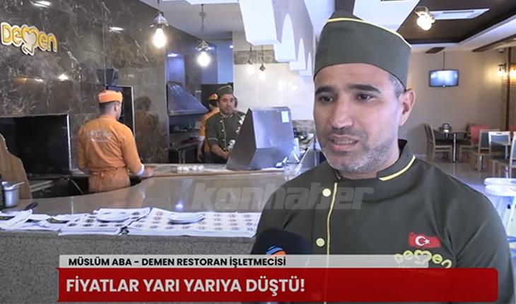 Hal böyle olunca Konya’da restoran işleten Müslüm Aba, kuruluşlarının 7. yıl dönümüne özel kampanya başlattı. Konya'da 20 yıldır restoran sektöründe hizmet veren Demen Şanlıurfa Lezzetleri, Urfa yöresine ait kahvaltıdan ızgara çeşitlerine kadar onlarca yemek çeşidinde fiyatları yarı yarıya kadar düşürdü.