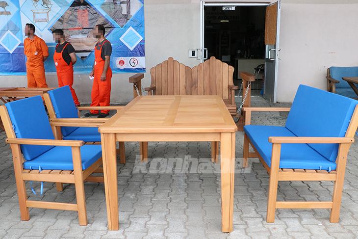 İnfaz koruma memuru ve atölye sorumlusu Mustafa Taşkın ise bahçe ve balkon takımları, piknik masası, katlanır tabure, ahşap salıncak gibi ürün yelpazesine sahip olduklarını, bunun yanı sıra özel sipariş aldıklarını söyledi.