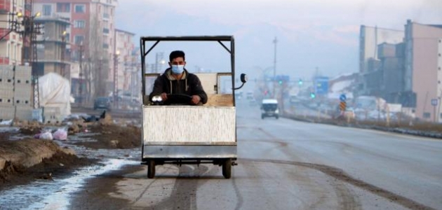 Motorlu olması hem çevre kirliliği hem de gürültü kirliliğine neden oluyordu. Çöplerden topladığım hurda malzemelerden bu aracı yaptım. Demir, tahta, plastik ve el arabası tekerliğinden böyle bir iş çıkardık. Son olarak aküsünü bağladık. Yaklaşık 5 bin TL’ye mal oldu. Elektrikle çalışan bu aracımla her gün evime gelip gidiyorum" dedi.