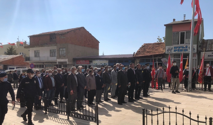 İlçe Kaymakamlığı ve Belediye Başkanlığı çelenklerinin Atatürk Anıtı'na bırakılmasının ardından saygı duruşu ve İstiklal Marşı'nın okunmasıyla tören sona erdi.