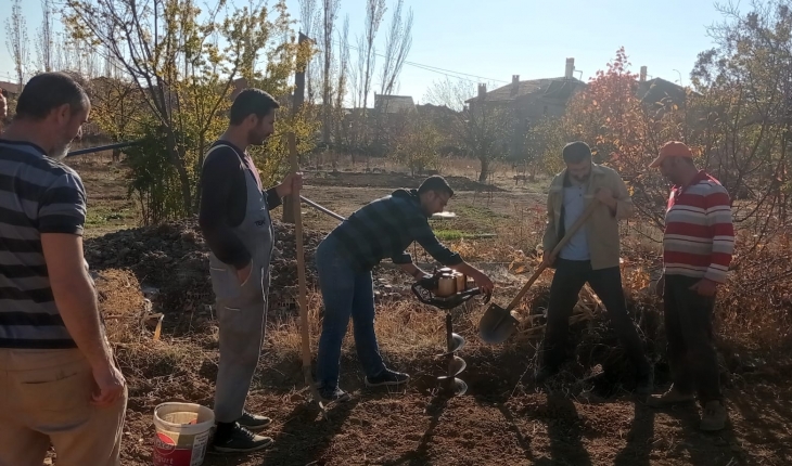 Konya'nın Hüyük ilçesinde İmam Hatip Ortaokulu öğretmenleri ve görevli personel okul yanındaki boş araziye ceviz ve badem fidanı ekti.