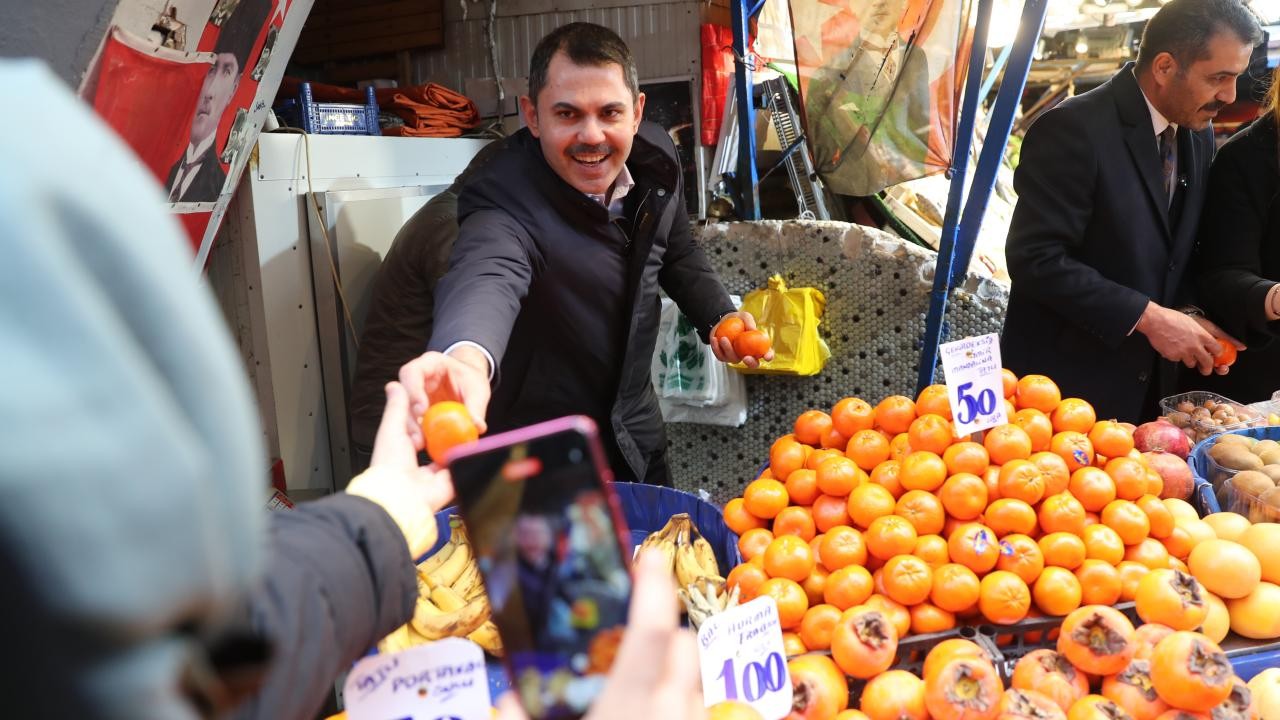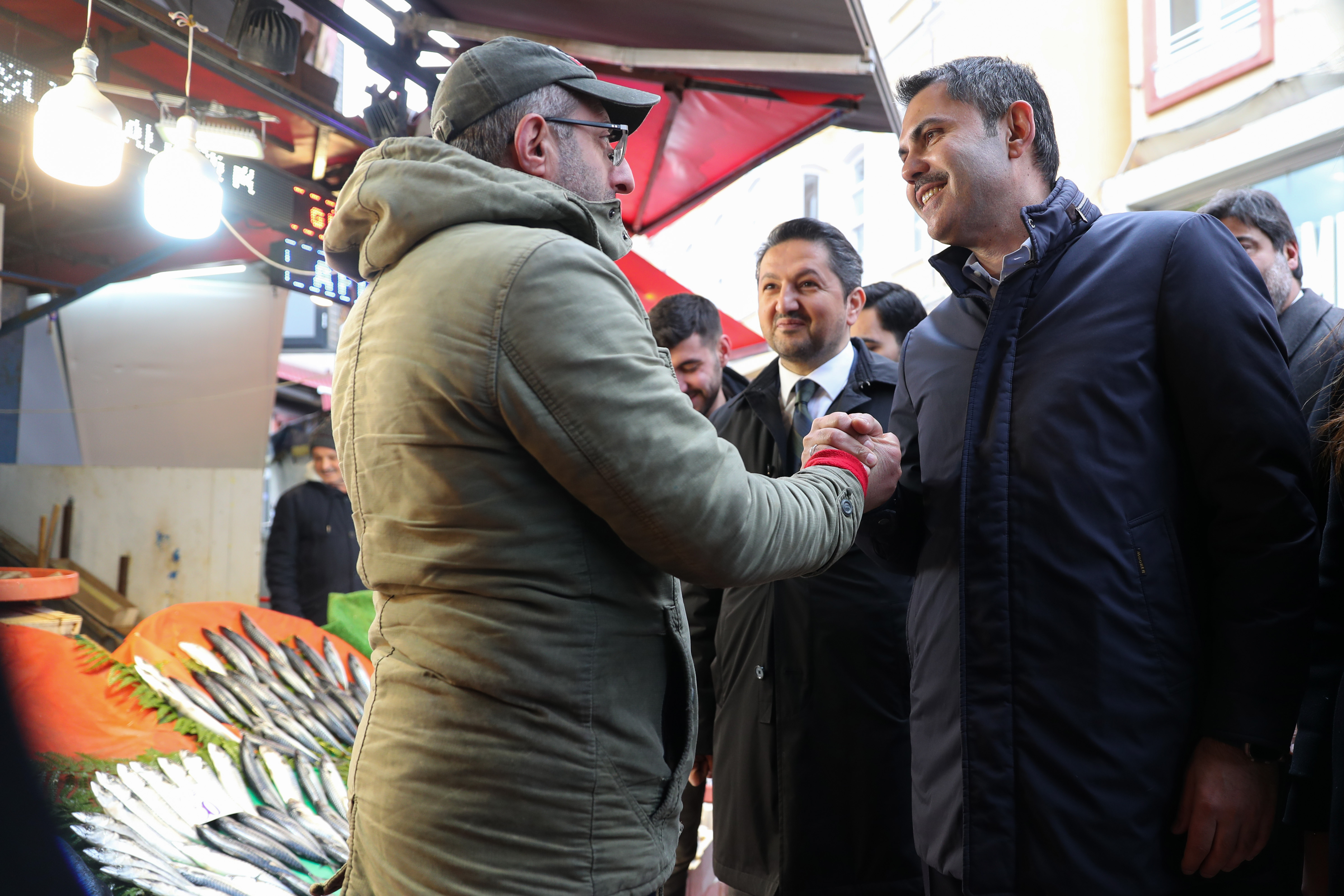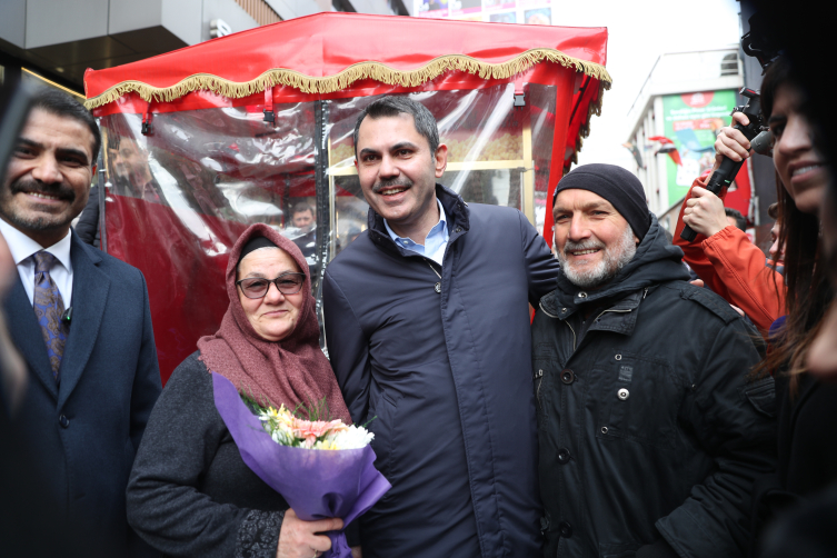 Beşiktaş'ta esnaf ziyareti gerçekleştiren AK Parti'nin İBB Başkan adayı Murat Kurum, burada basın mensuplarına çiçek takdim etti, İstanbul'un her yerinin çiçek bahçesine döneceğini söyledi.