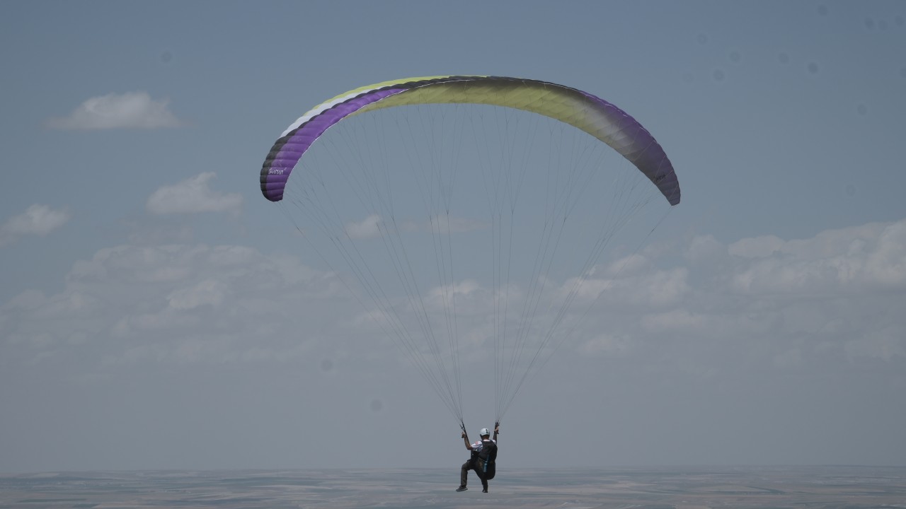 Konya'da İç Anadolu Bölgesi Yamaç Paraşütü Hedef Şampiyonası başladı. Karapınar ilçesinde düzenlenen şampiyonanın ilk gününde 40 paraşütçü havalandı.