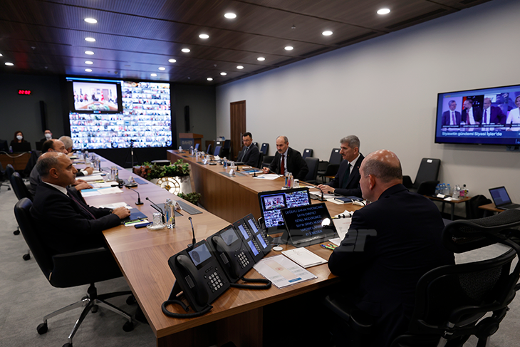 Soylu, bakanlıktaki Güvenlik ve Acil Durumlar Koordinasyon Merkezinden (GAMER) İçişleri Bakan Yardımcısı Muhterem İnce ve Emniyet Genel Müdürü Mehmet Aktaş’la birlikte emniyet müdürleriyle görüşme gerçekleştirdi.