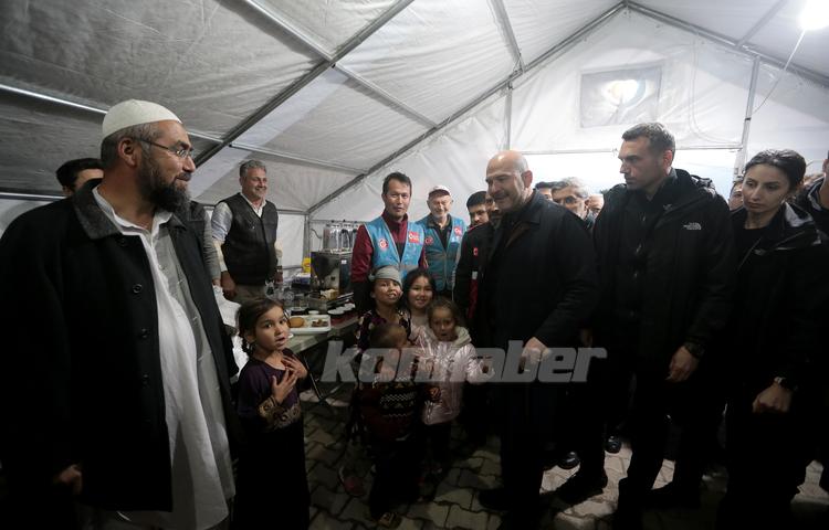 Depremden etkilenen 11 ilde vatandaşların ramazanı huzurlu geçirmesi için çalışmalar yapıldığını, devletin tüm birimlerinin sahada olduğunu dile getiren Soylu, "Allah şahittir, bu mübarek gece, ay hürmetine söylüyorum, sizi yalnız bırakmayacağız." dedi.