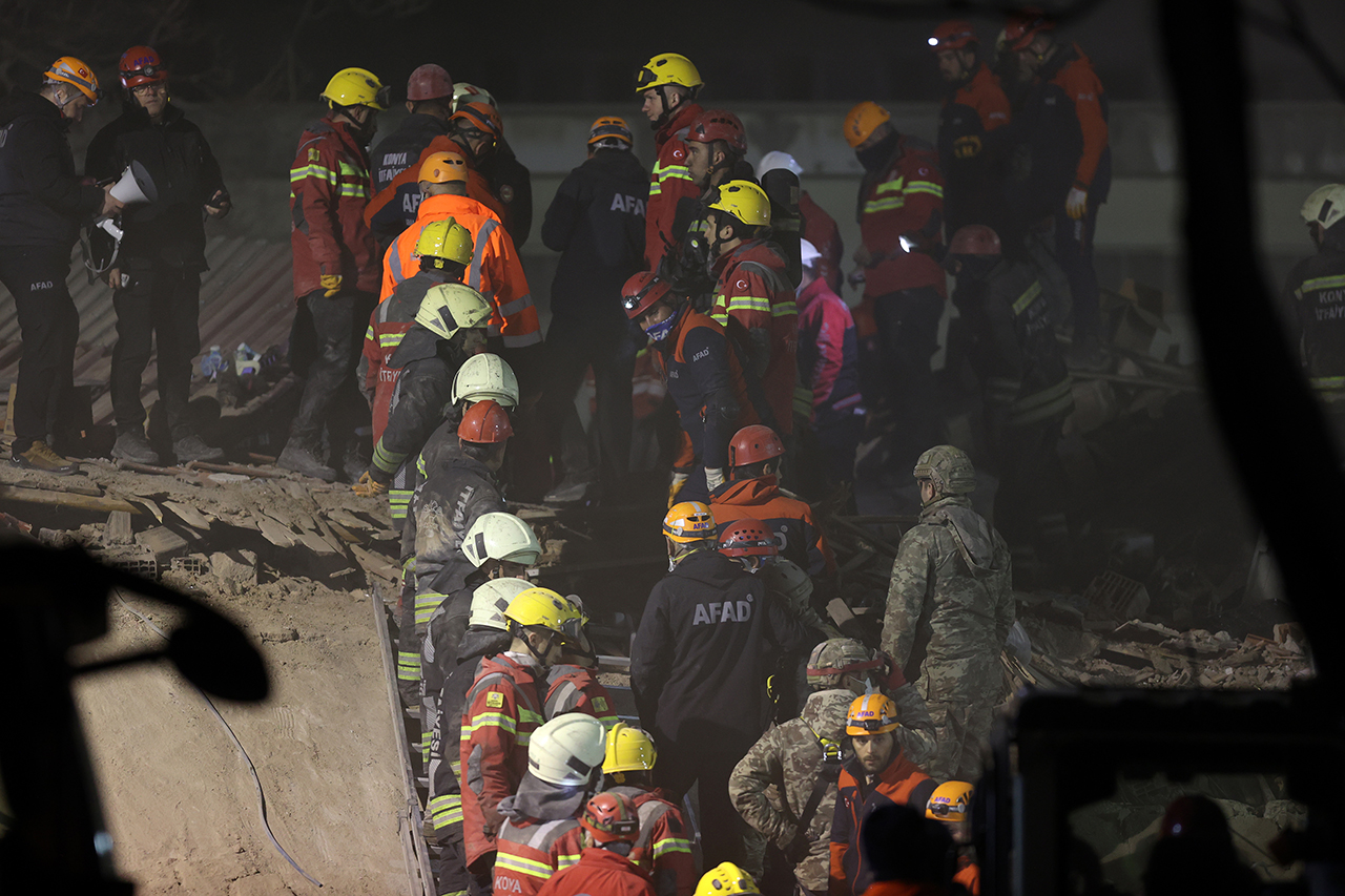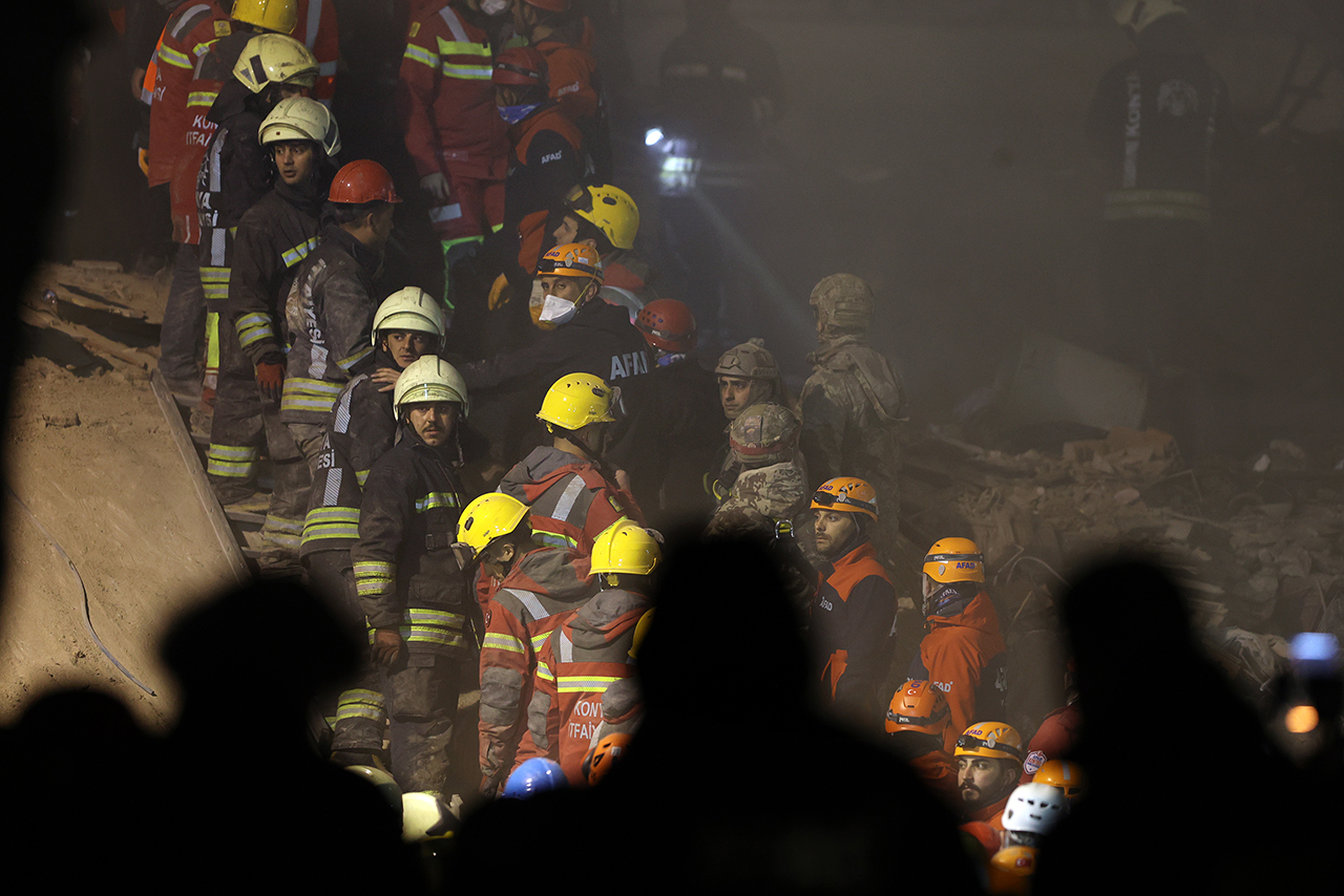 Yerlikaya, 10 dakika içinde arama kurtarmayla ilgili tüm ekiplerin olay yerine geldiğini belirterek "10 dakika içerisinde bu çöken binanın enkazından arama kurtarma çalışmaları başladı. AFAD, itfaiye, emniyet, jandarma, 112, UMKE, Kızılay, AKUT ve STK'lerimizden toplam 962 personel, 216 araç şu an arama kurtarma çalışmalarına devam ediyor. Yani devletin tüm kurum ve kuruluşları, Büyükşehir, ilçe belediyelerimiz civar vilayetlerden, AFAD koordinasyonunda gelen, 12 vilayetten gelen alanında uzman arama kurtarma ekiplerimiz enkazda canlara ulaşmaya çalışıyor. " diye konuştu.