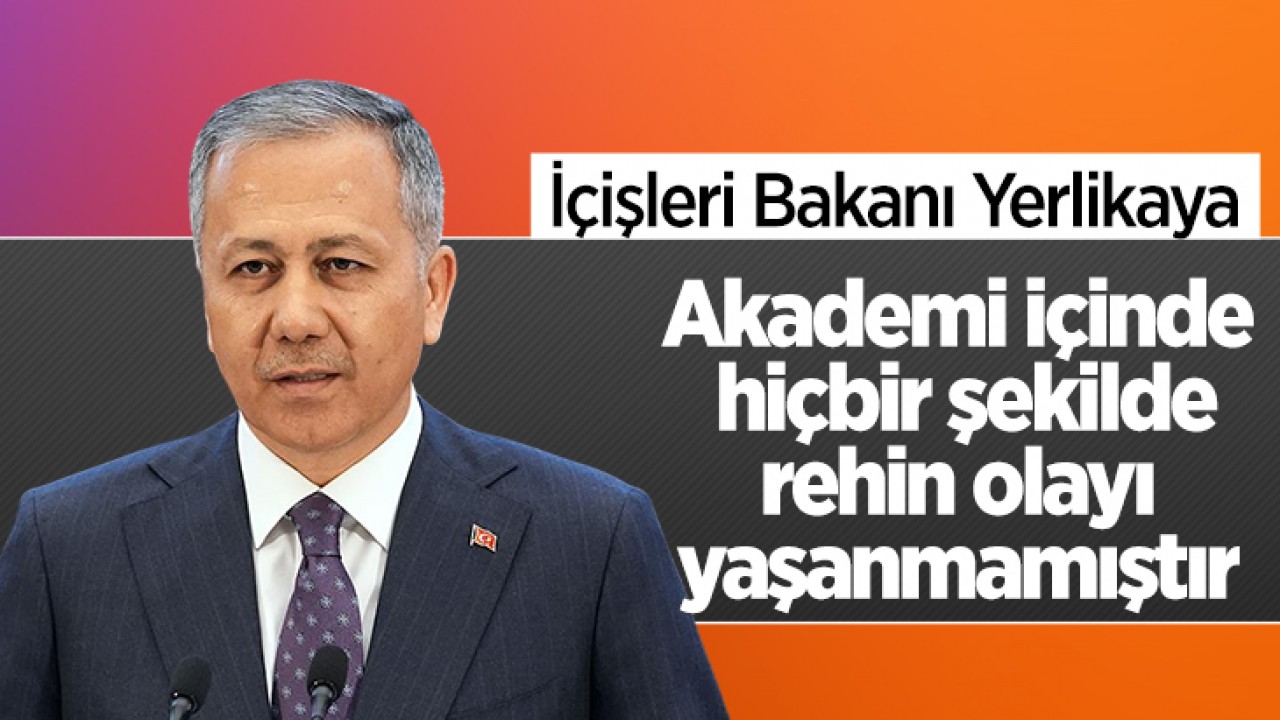 İçişleri Bakanı Ali Yerlikaya, "Hiçbir şekilde akademinin içindeki rehin olayı yaşanmamıştır" dedi.