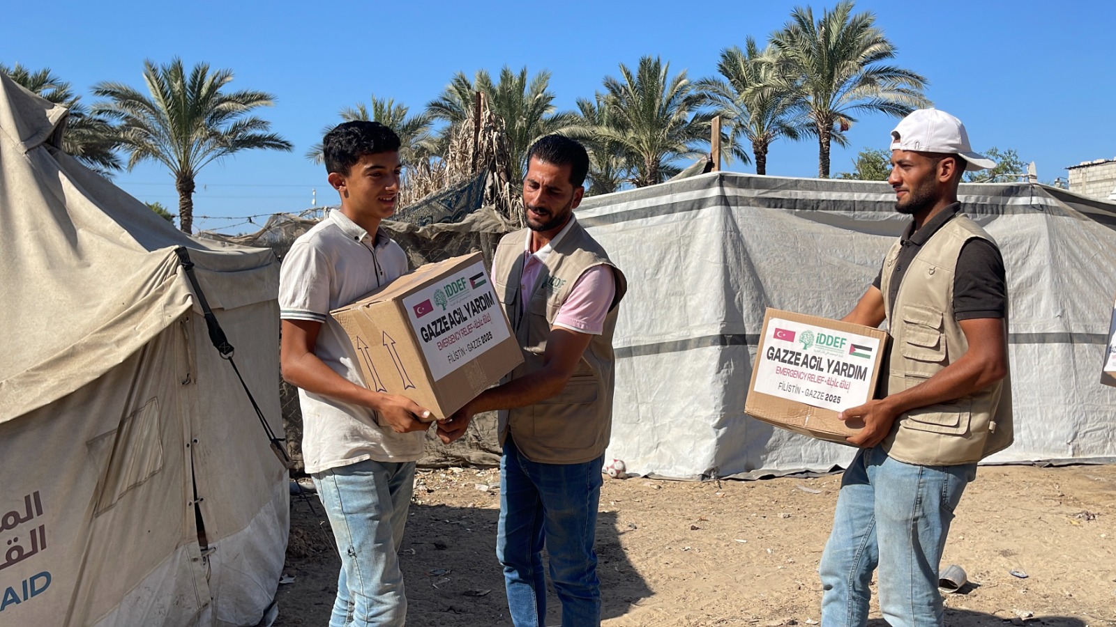 İDDEF, Gazze’de sağlanan ateşkesin ardından acil yardım çalışmalarını aralıksız sürdürerek gıda, sıcak yemek, su ve temel ihtiyaç paketlerini Filistinli ailelere ulaştırıyor.