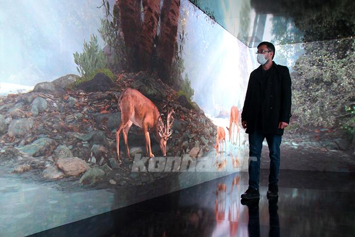 Tünele giren katılımcı, önce yemyeşil doğa, kuş sesleri ve aydınlık bir gün, sonrasında ise yangın, sel ve kuraklık afetlerinin görüntüleriyle karşılaşıyor.