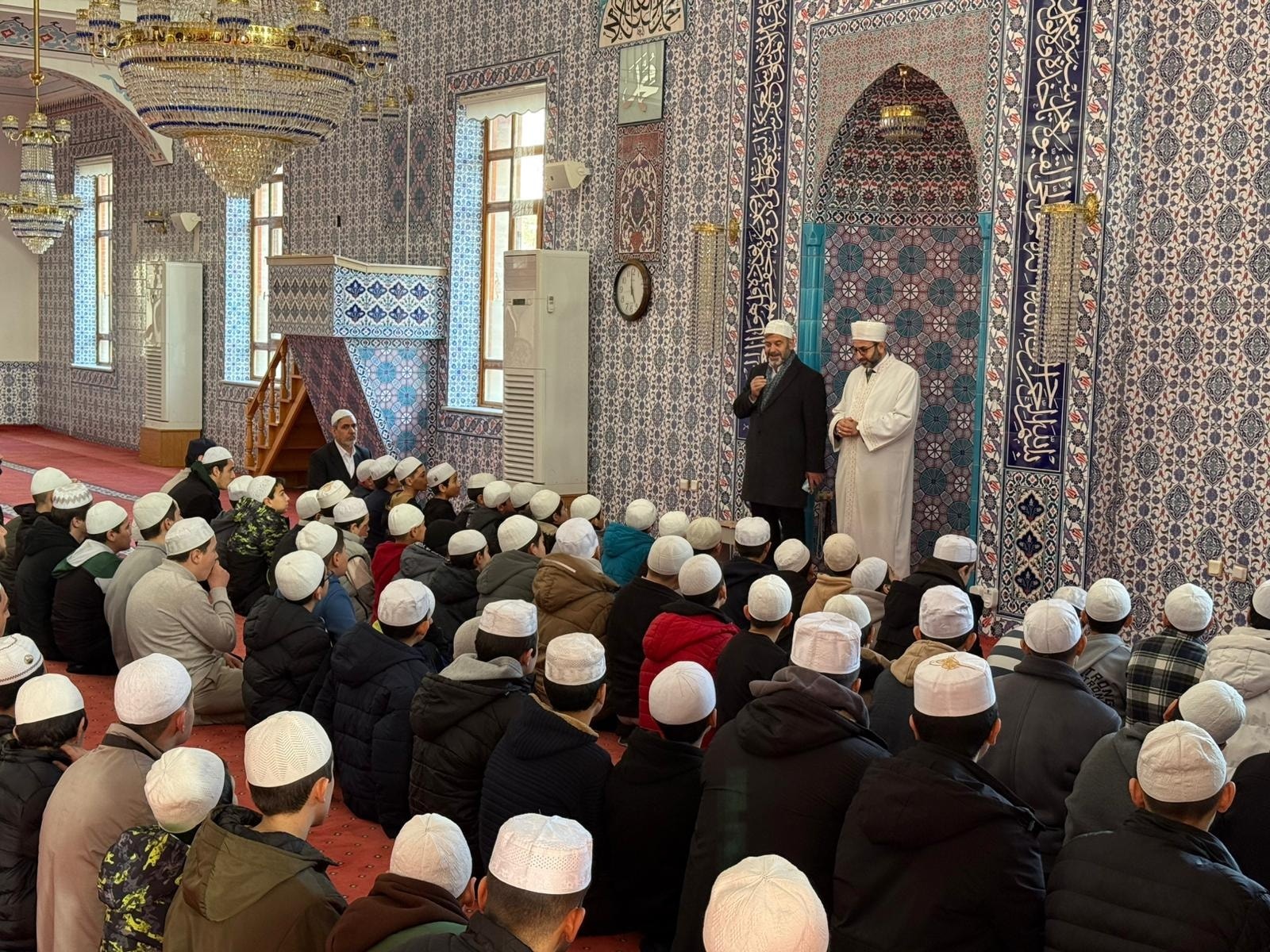 Ziyaret kapsamında Elmas Camii’nde, Mushafları İnceleme ve Kıraat Kurulu Başkanı Osman İyişenyürek’in imametinde ikindi namazı eda edildi. Namazın ardından Elmas Kur’an Kursu öğrencileriyle sohbet edilerek öğrencilerle bir süre hasbihal edildi.