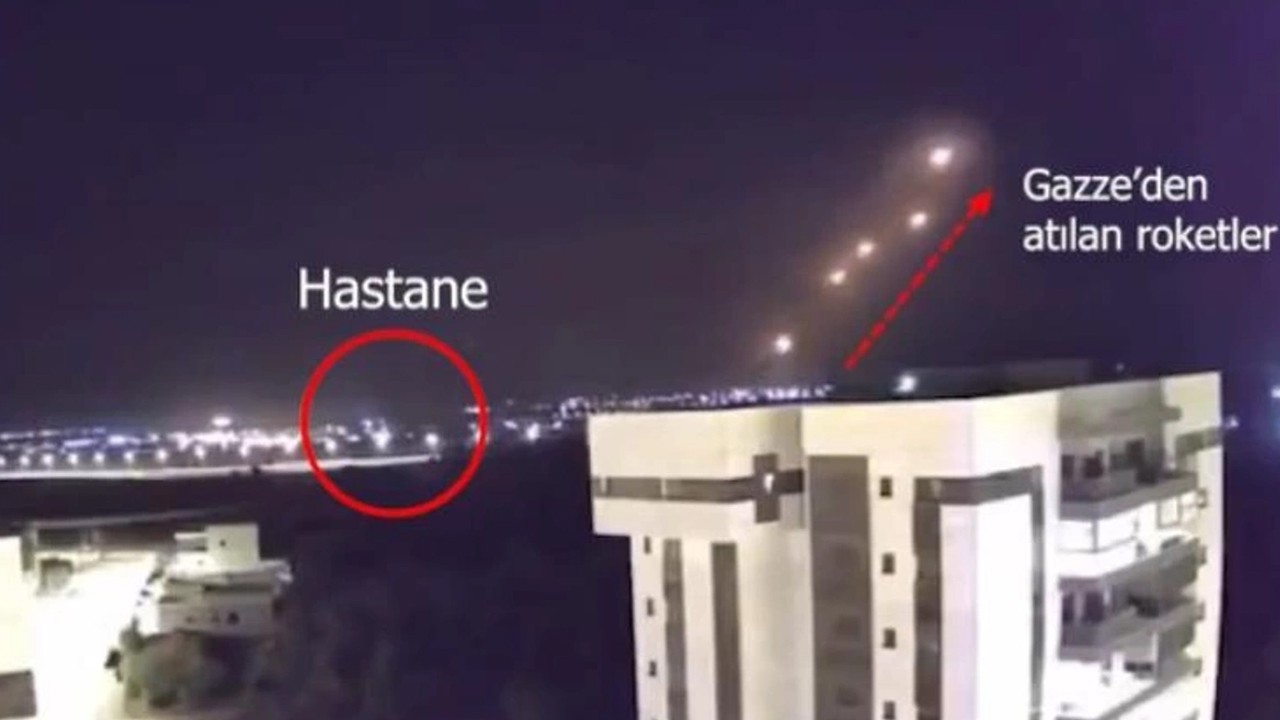 Görüntülerin ham halinde de görüldüğü gibi, Gazze'den çıkan roketlerin yönü ile hastanenin konumu ters yöndedir.