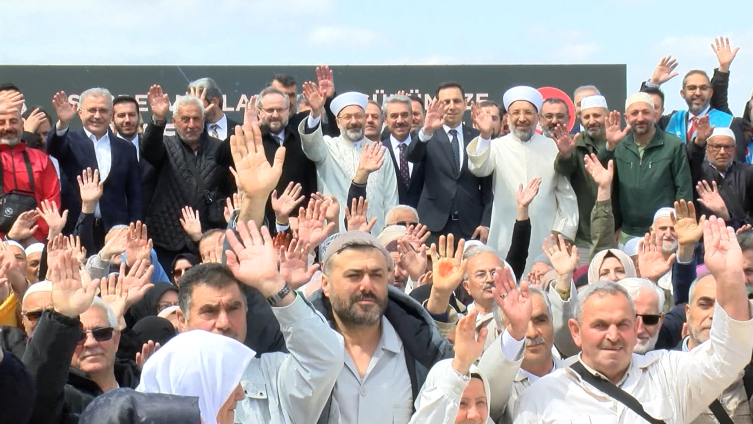 Diyanet İşleri Başkanı Erbaş ve diğer katılımcılar, hacı adaylarını dua edip el sallayarak uğurladı.