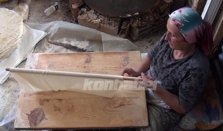Konyalı ev hanımları yaklaşan kış öncesi komşuları ile birlikte imece usulü kışın tüketeceği yufka ekmeği hazırlığına başladı. Şükran Arıcı, "Yufkasız yapamayız. Allah ağız tadı ile yedirmek nasip etsin" dedi.
