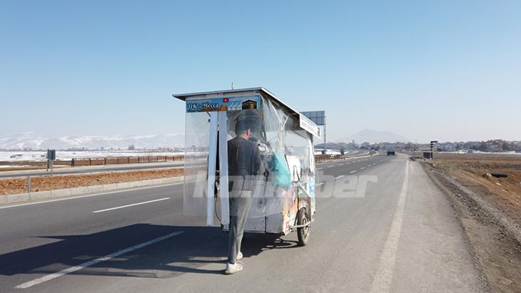 Iraklı Adam Muhammed, hac için İngiltere'den yola çıktı. Mekke'ye yürüyerek gidecek olan Muhammed, hem yatağı hem de mutfağı olan 3 tekerlekli aracını iterek Konya’nın Ilgın ilçesinde bulunan şifalı kaplıcalarında mola verdi.