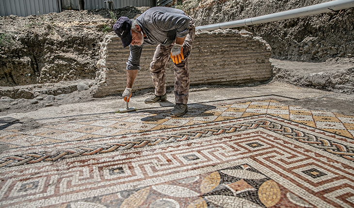 Arkeologlar tarafından alanda yapılan incelemede, kalıntıların Roma dönemine ait bir villanın duvarı olduğu ve tabanında da geometrik bezemeli taban mozaiğinin yer aldığı tespit edildi.