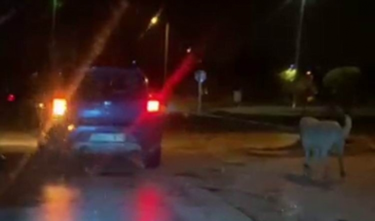 Olay, dün akşam saatlerinden merkez Salıbaba Mahallesi’nde yaşandı. Sanayi girişine doğru seyir halinde olan bir araçtan sarkıtılan ipe bağlanan köpek, diğer sürücülerin dikkatini çekti.