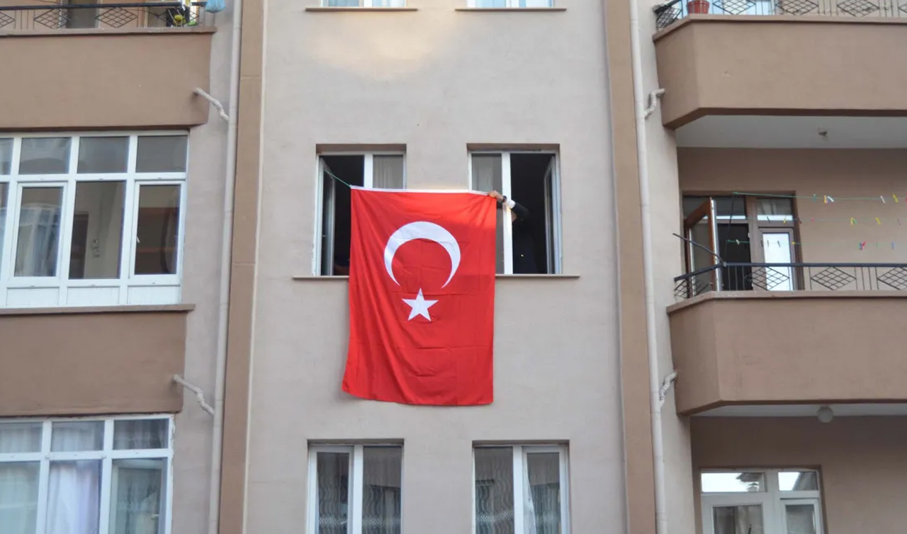 AKSARAY'DAKİ EVİNE TÜRK BAYRAĞI ASILDI