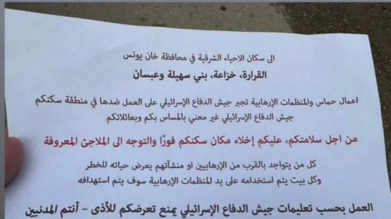 Han Yunus, Khuza'a, Bani Süheyla ve Abasan'ın doğu mahallelerinin sakinlerine;