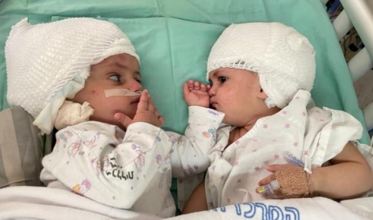 İsrail'de başlarından yapışık doğan ikizler, 12 saat süren ameliyatla ayrıldı. 1 yaşındaki kız çocukları, başarılı ameliyatın ardından birbirlerini ilk defa gördü.