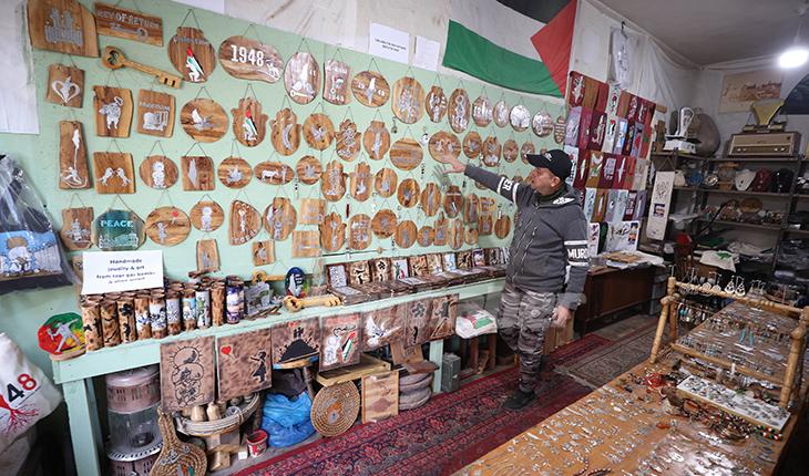 Filistinli 56 yaşındaki Ekrem el-Vara, İsrail ordusu tarafından işgal altındaki Batı Şeria'da Filistinlilere karşı kullanılan silahların atıklarını hediyelik eşyalara dönüştürüyor.