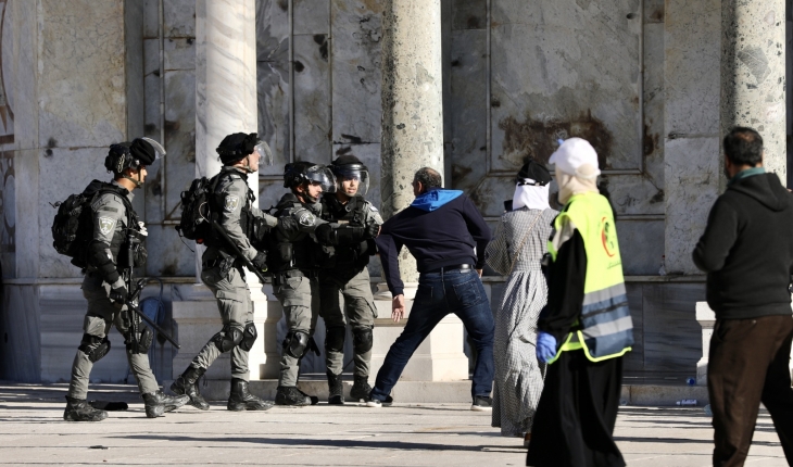 Sabah saatlerinde Mescid-i Aksa'nın avlusuna baskın düzenleyen İsrail polisi, kauçuk kaplı mermi ve ses bombası kullandı.