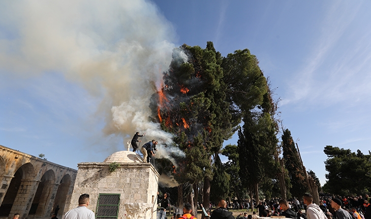 Olaylar sırasında Mescid-i Aksa'nın avlusundaki ağaçlardan birinin alev alması sonucu çıkan yangın söndürüldü.