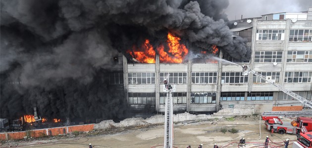Bayrampaşa'da Baltaş Kilimciler Sanayi Sitesi'ndeki ayakkabı tabanı imalathanesinde çıkan yangın henüz kontrol altına alınamadı.