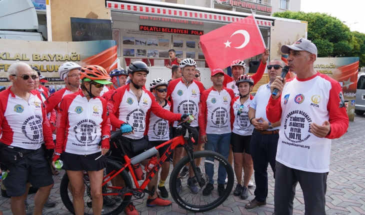 Cumhuriyet Meydanı'ndaki törende etkinlik hakkında bilgi veren Polatlı Belediyesi Tarihi Alanlar Tanıtım Merkezi Genel Koordinatörü Kadim Koç, "Bu sene Büyük Taarruz'da kesintiye uğramadan 19 gün boyunca 1150 kilometre yaparak bu yolu kat edeceğiz. Atalarımız da geçmişte bu yolu 14 günde gitmişler, biz 19 günde bisikletle ancak gidebiliyoruz. Onlar yayan koşmuşlar, çarıklarla koşmuşlar. Bunları düşündüğümüzde tüylerimiz diken diken oluyor." dedi.Koç, gittikleri her şehitlikten toprak aldıklarını söyledi.