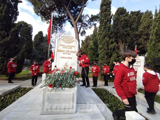 İstiklal Marşı'nın kabulünün 100. yıl dönümünde İstiklal Şairi Mehmet Akif Ersoy'un Edirnekapı Mezarlığı'ndaki kabrinde anma töreni düzenlendi.