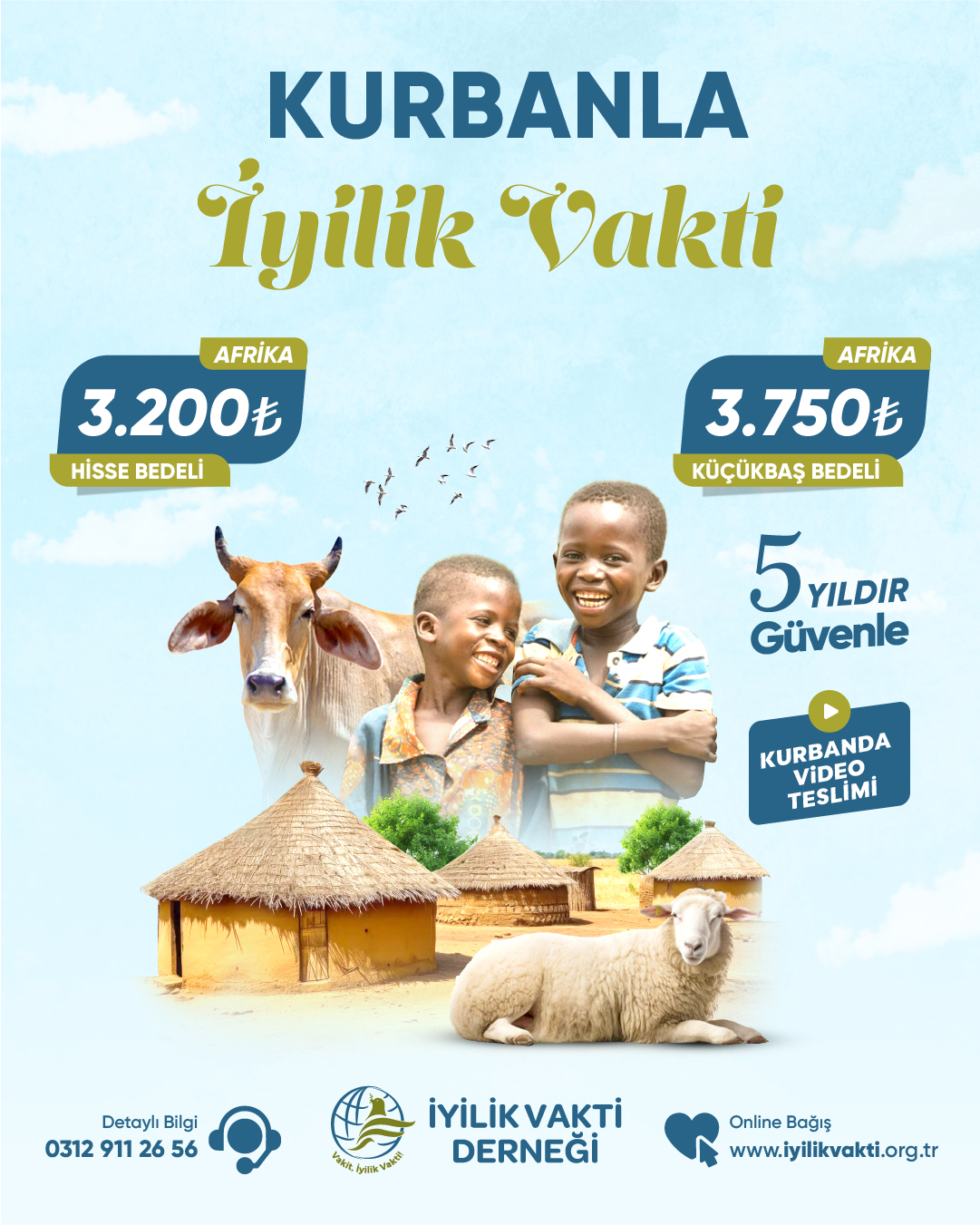 Dernek yönetimi tarafından yapılan açıklamada yıl boyunca eğitim ve kalkınma çalışmaları devam etmekte ve bağışlarıyla destek olmak isteyen hayırseverler, iyilikvakti.org.tr internet sitesi üzerinden online olarak web sitesinde yer alan ilgili banka hesaplarına EFT ve havale yoluyla İyilik Vakti Derneği merkezlerinden 0312 911 26 56numaralı telefon numarasını arayarak kurban bağışı başta olmak üzere tüm bağışlarınıgerçekleştirebilirler.