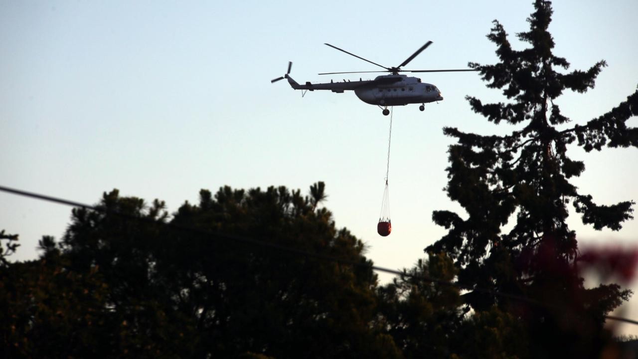 Dün akşam havanın kararmasıyla ara verilen havadan müdahale, günün ilk ışıklarıyla helikopter ve uçaklarla yeniden başladı.