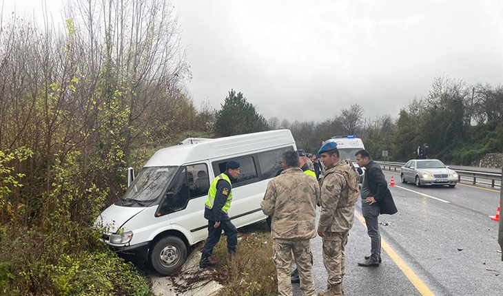 Düzce'de yaşanan 5,9 büyüklüğündeki deprem sonrası kente destek için Zonguldak'tan gelen jandarma ekiplerini taşıyan minibüsün dönüş yolunda kaza yapması sonucu 6 personel yaralandı.