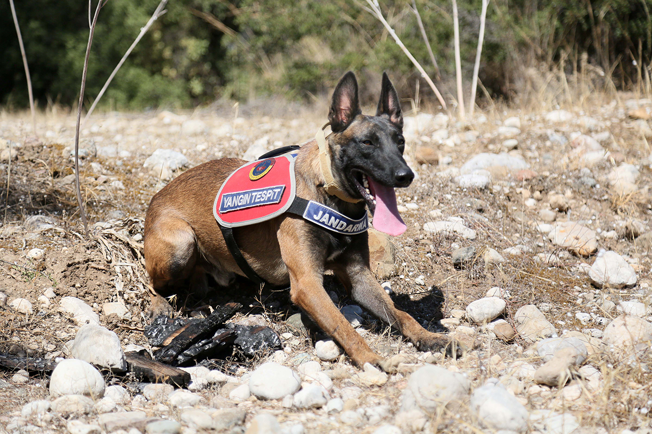 Antalya İl Jandarma Komutanlığı bünyesinde 'Hane' isimli Belçika Malinois cinsi 2 yaşındaki köpek, orman yangınlarında kundaklama olaylarını tespit ediyor.