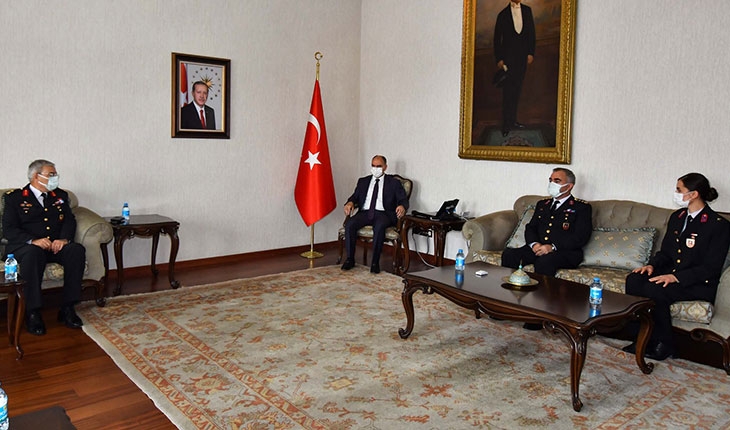 Konya Valisi Vahdettin Özkan, Jandarma Teşkilatı’nın 182. kuruluş yıl dönümü münasebetiyle İl Jandarma Komutanı Tuğgeneral Şakir Uslu, İl Jandarma Komutan Yardımcıları J. Alb. Mevlüt Yıldırım ve J. Yb. Gürol Okyar ile beraberindeki heyeti misafir etti.