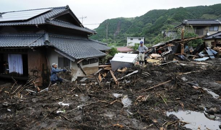 Japonya'da mevsimsel tayfunlar sonrası gelen şiddetli yağışlar birçok eyalette hayatı olumsuz etkilemeye devam ediyor.