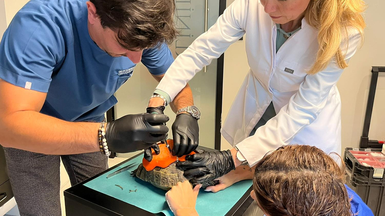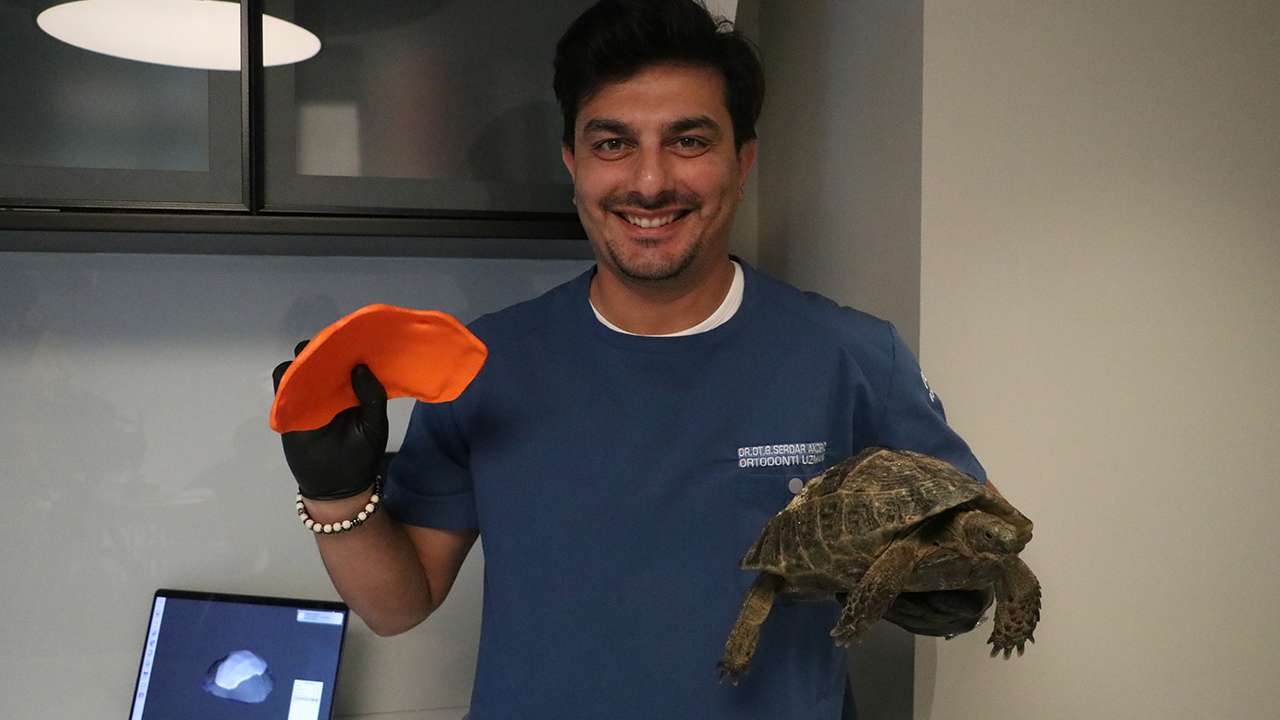 Diş Hekimi Serdar Akdeniz ise, "Kaplumbağanın kabuğunda büyük kırıklar vardı. Geleneksel akrilikle yapılan yapışkanlarla yaptığımız zaman çok başarılı olmayacağını düşündük. Üç boyutlu teknolojileri insanlar için kullanıyoruz; niye kaplumbağa için kullanmayalım dedik. Ve kaplumbağanın ilk önce kabuğunu taradık. Sonrasında da bir tasarım yaptık. Üzerine bu şekilde bir protez kabuk yerleştirdik" dedi.