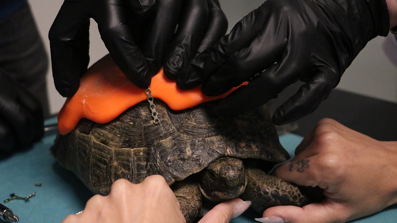 Ankara’da yol kenarında kabuğu kırılmış halde bulunan kara kaplumbağası 'Roka'ya 3 boyutlu protez takıldı.