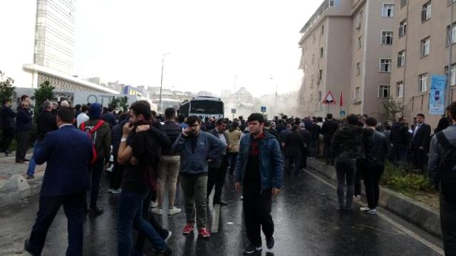 Yurt önünde toplanan vatandaşlar, yıkımı engellemeye çalıştı. Polis ekipleri, buradaki kalabalığa biber gazıyla müdahalede bulundu.