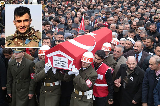 Uzman Onbaşı Ahmet Saygılı 'nın (23) cenazesi, memleketi Kahramanmaraş'ın Türkoğlu ilçesinde toprağa verildi.Saygılı'nın Türk bayrağına sarılı tabutu Necip Fazıl Şehir Hastanesi morgundan alınarak yüzlerce araçtan oluşan konvoy halinde Türkoğlu ilçesine bağlı Beyoğlu Mahallesi'ndeki baba ocağına götürüldü.Burada helallik alınmasının ardından şehidin naaşı İnönü Tabaklı Camisine getirildi.