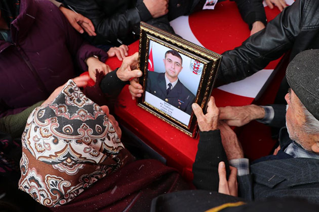 Anne Menşure Gürdal ve baba Hüseyin Pekel, yakınlarının desteğiyle ayakta durabildi. Menşure Gürdal, elindeki oğlunun fotoğrafı ve beresini öpüp tabutuna sarılarak gözyaşı döktü.
