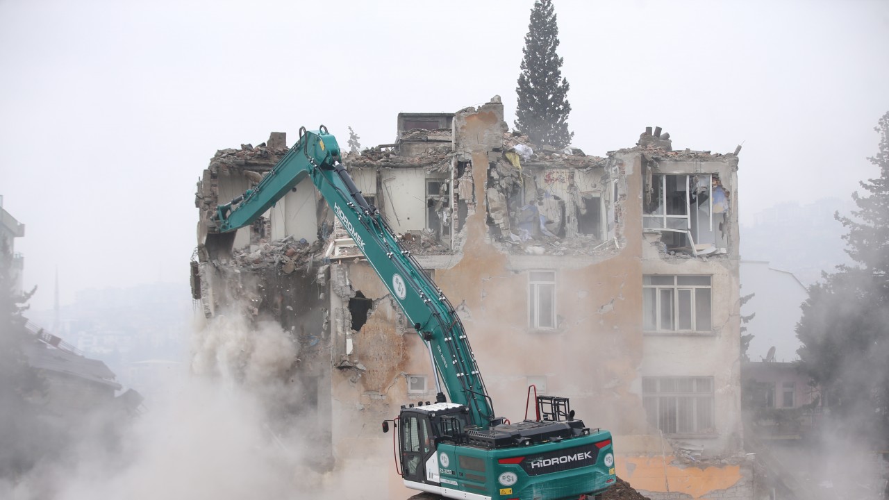 Ekipler, Hükümet Bulvarı'ndaki beş katlı binanın yıkım işlemlerini sürdürdü. Bina sakinleri de enkaz kaldırma çalışmalarına refakat etti. Dulkadiroğlu ve Onikişubat ilçelerinde acil yıkılma kararı bulunan 17 bina bugün yıkılacak.