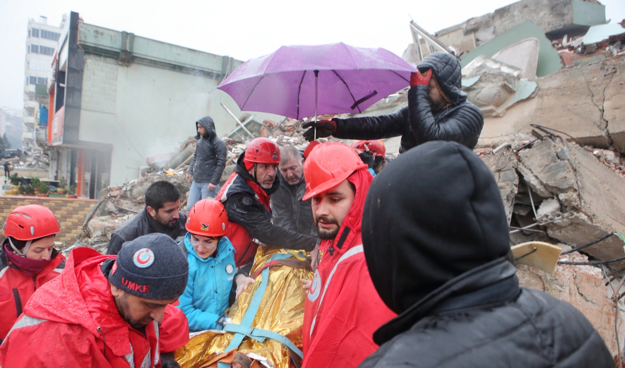 Yıkılan 12 katlı binanın enkazında, bir kanepenin oluşturduğu yaşam üçgeninde mahsur kalan anne ve kızı, depremden yaklaşık 10 saat sonra vatandaşların ve UMKE ekiplerinin çabasıyla kurtarıldı.Sağlık ekiplerince ilk müdahalesi yapılan anne ve kızı, ambulansla hastaneye kaldırıldı.