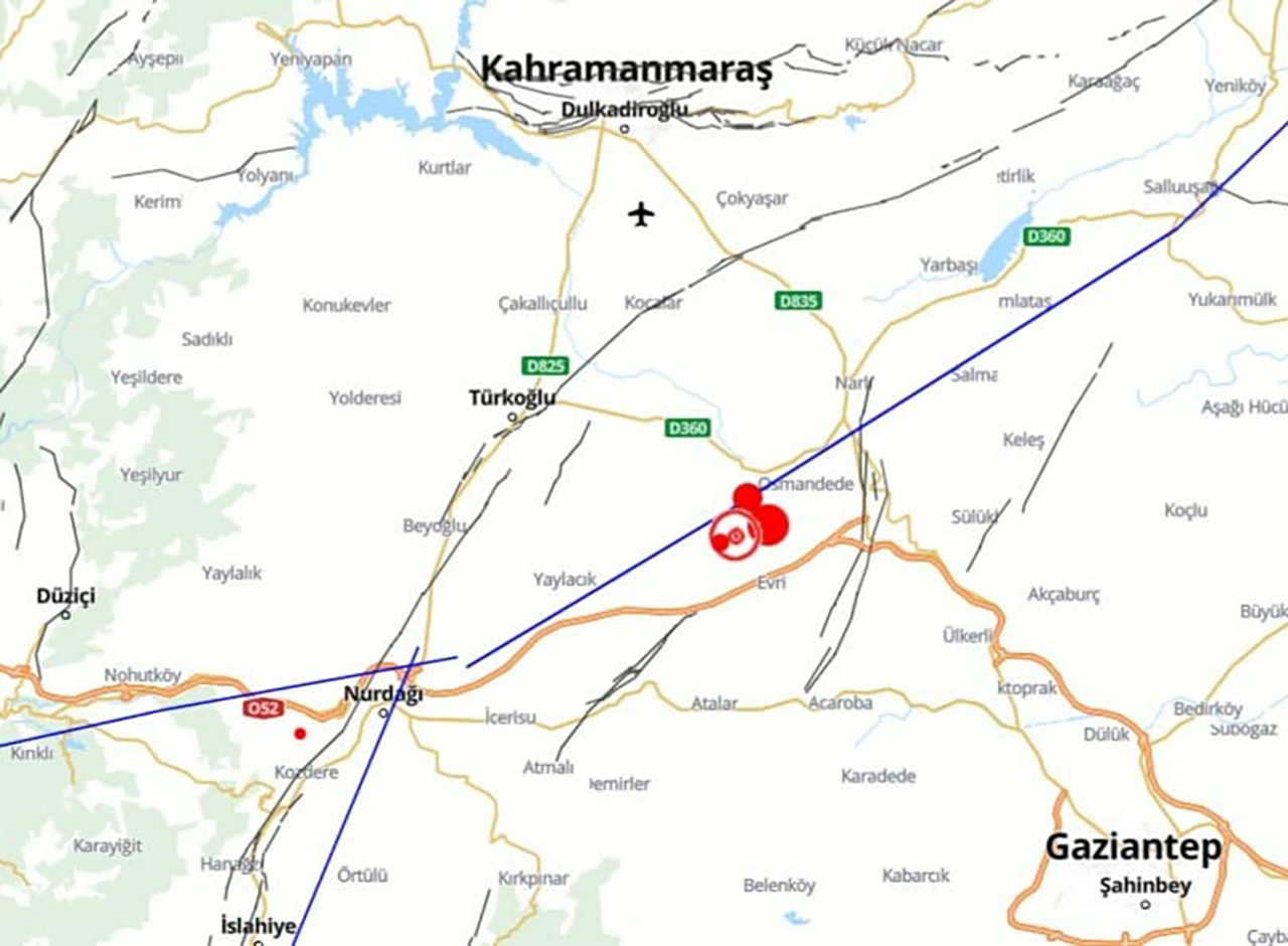 Sözbilir, “Depremin dış merkez yerine baktığımız zaman, 6 Şubat 2023 Pazarcık depreminde ilk kırılmanın yaşandığı Narlı güneyine karşılık geliyor. Burası aynı zamanda Ölüdeniz Fayı’na ait Sakçagöz Fayı’nın kuzey ucu. Ölüdeniz Fayı’nın Türkiye sınırları içindeki kolları güneye doğru Sakçagöz Fayı, Yesemek Fayı ve Hacıpaşa Fayı şeklinde devam ediyor. Daha güneyde Suriye, Lübnan, İsrail gibi ülkelerden geçerek 1000 kilometre uzunluğa kadar ulaşıyor.” diye konuştu.