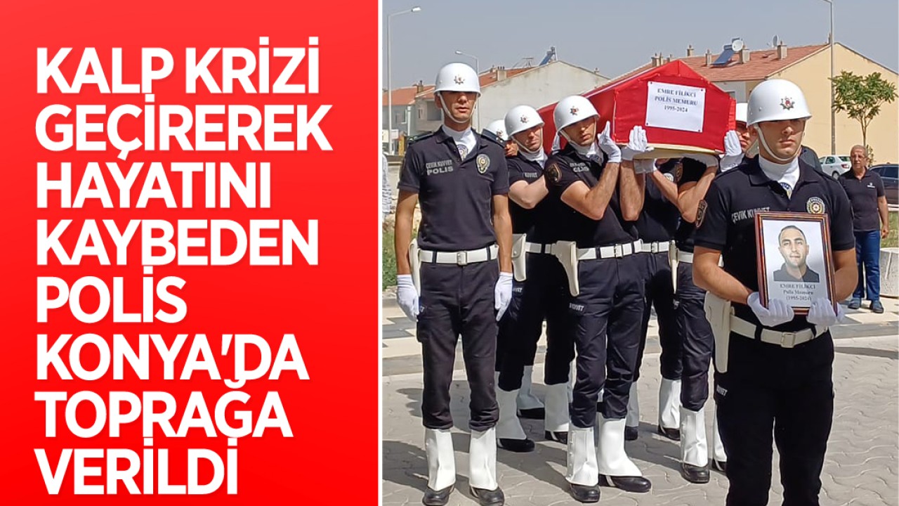 Şanlıurfa'nın Hilvan ilçesinde görev yaparken kalp krizi geçirerek hayatını kaybeden polis memuru Emre Filikçi, memleketi Konya'da son yolculuğuna uğurlandı.