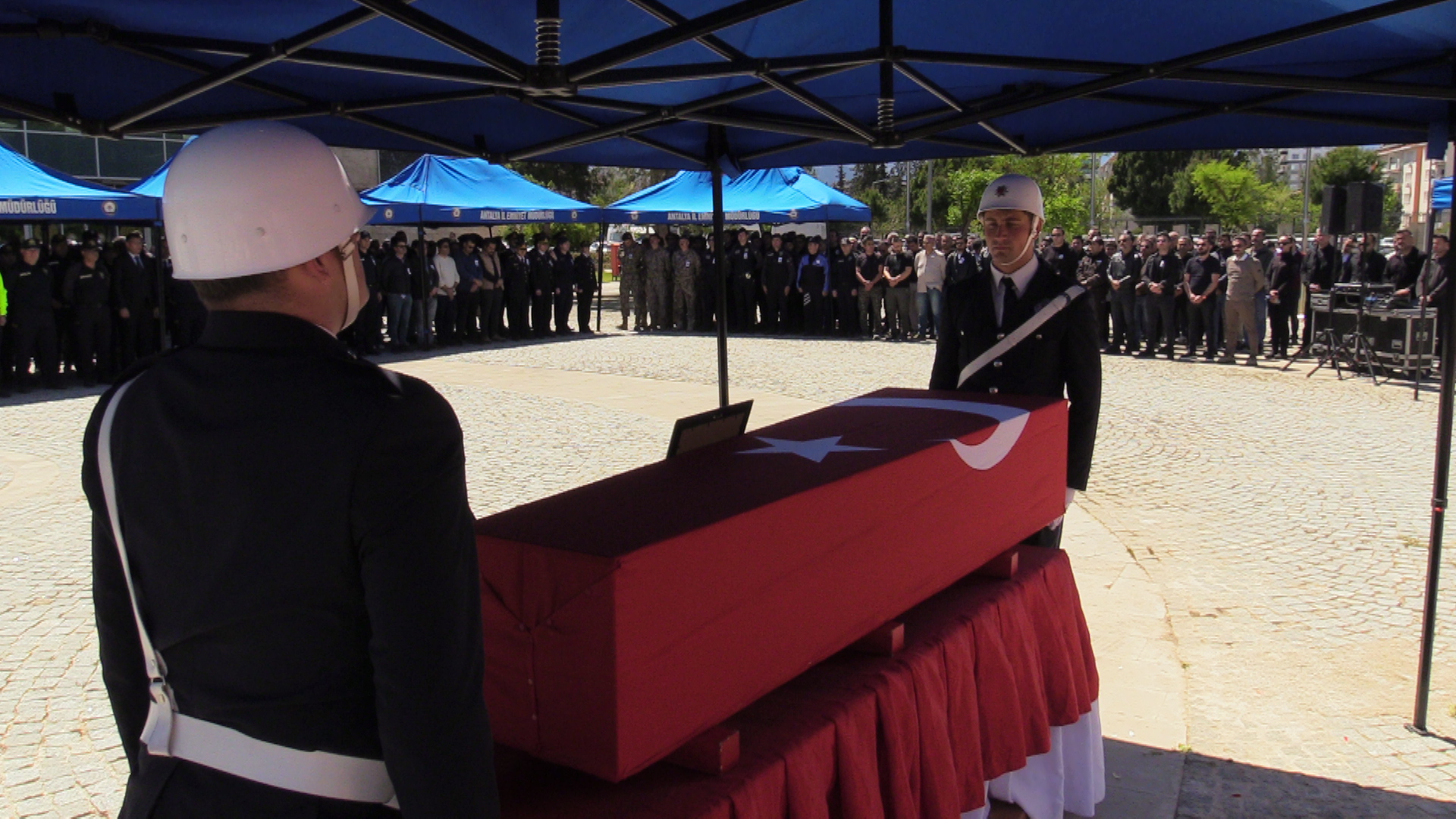 Konyaaltı İlçe Emniyet Müdürlüğü Devriye Ekipler Amirliği'nde görevli polis memuru Esat Koyuncu (51) için İl Emniyet Müdürlüğü bahçesinde tören düzenlendi.